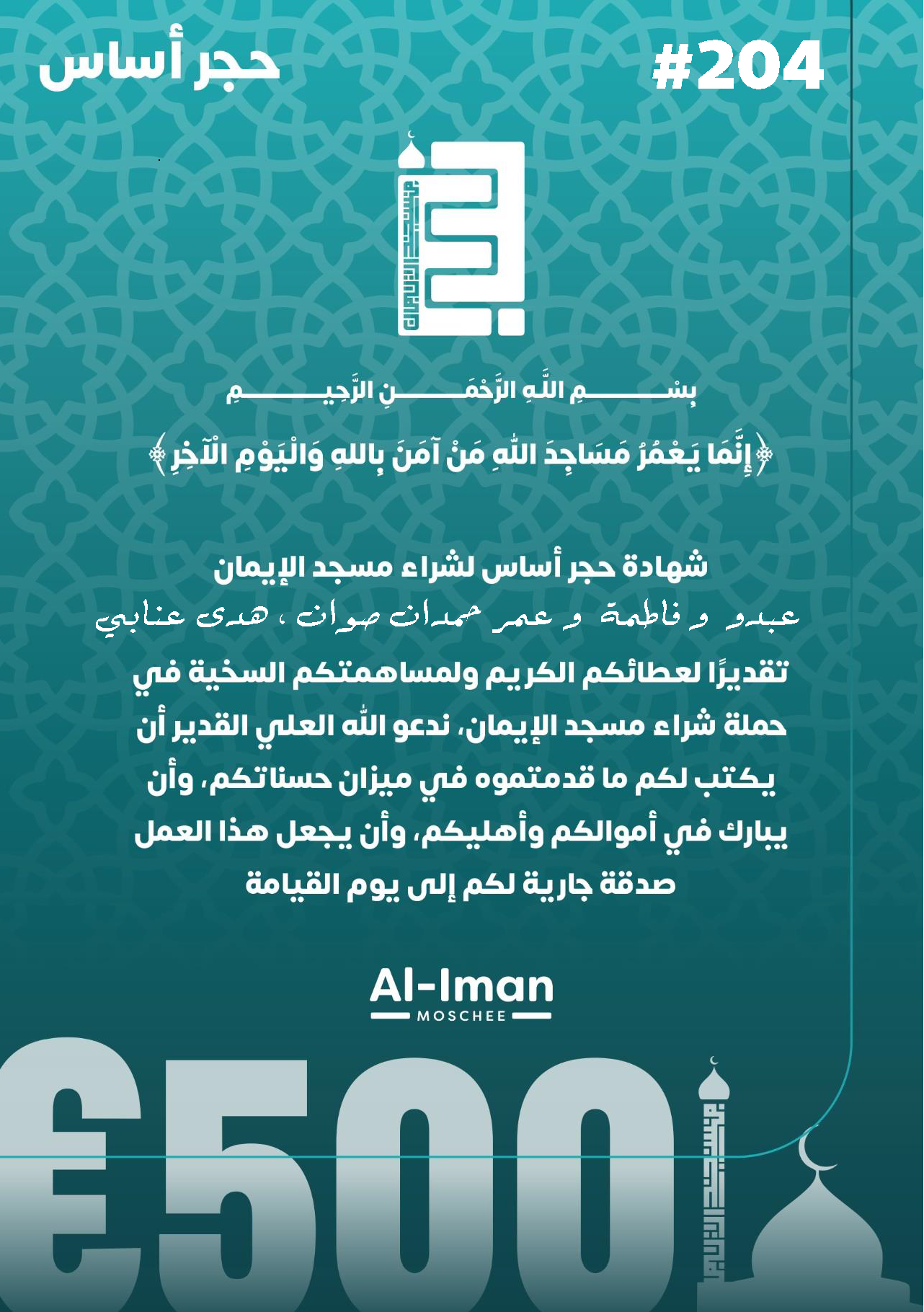 - ذكر اسمك بشكل بارز في مسجد الإيمان